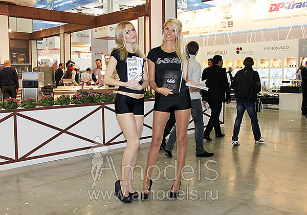 Модели привлекали внимание к компании. Две из них находились в зоне ресепшн, собирая информацию о потенциальных клиентах и рассказывая о бренде, а две другие перемещались по всему выставочному залу и приглашали гостей посетить стенд.